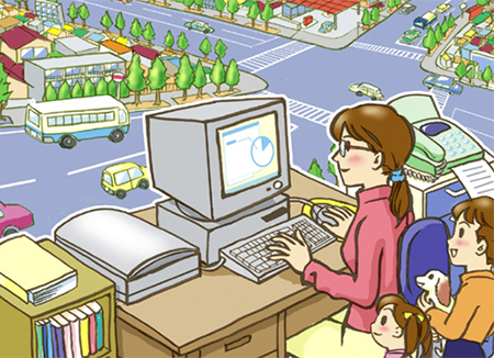 深谷市の市政本に使用されているイラストを描き起こしました。手書きのラインにデジタルで彩色しています。