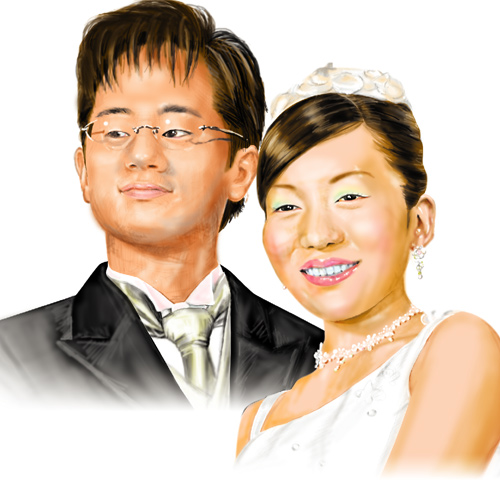 ウェディング贈呈用DVDの表紙用に似顔絵を描きました。