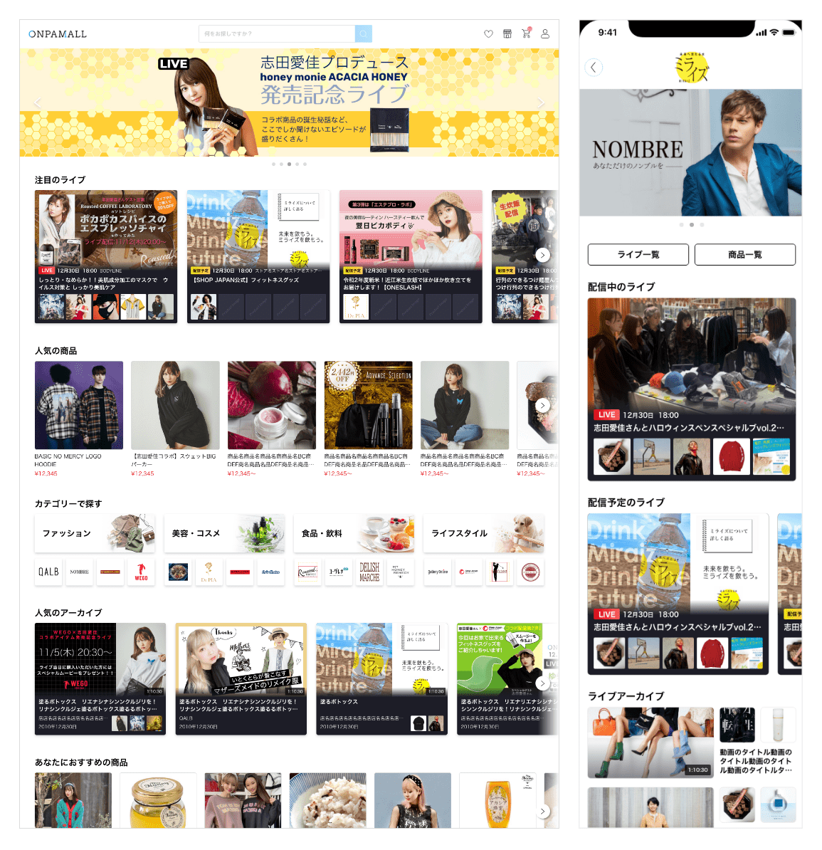 ライブコマースプラットフォームONPAMALLサービスに関わる全ての画面をデザインしました。