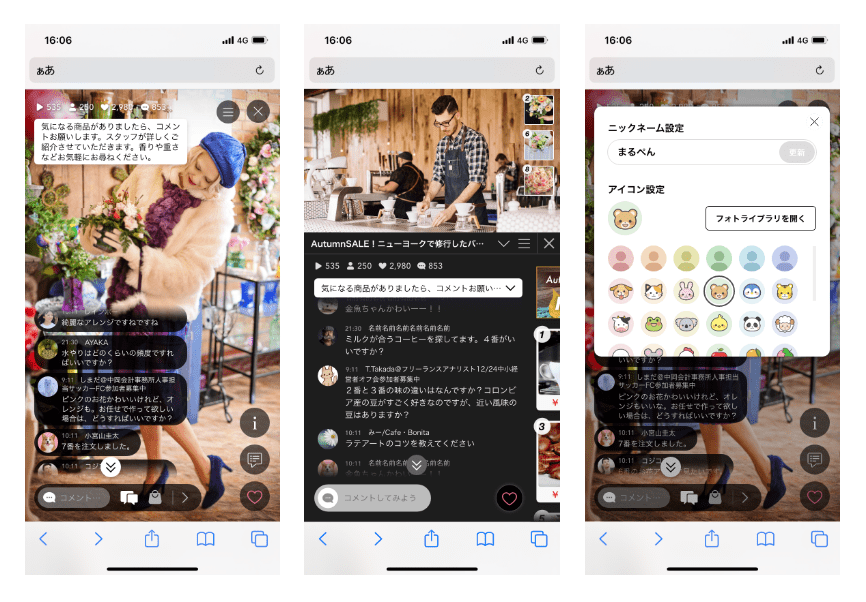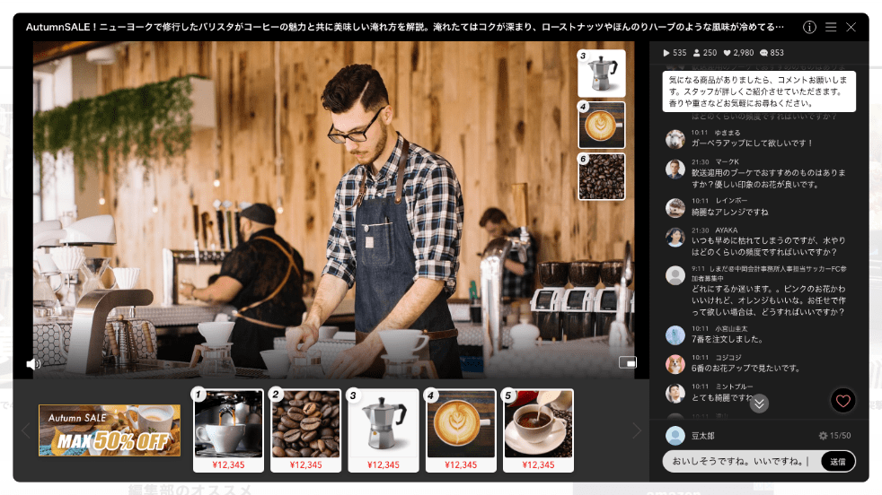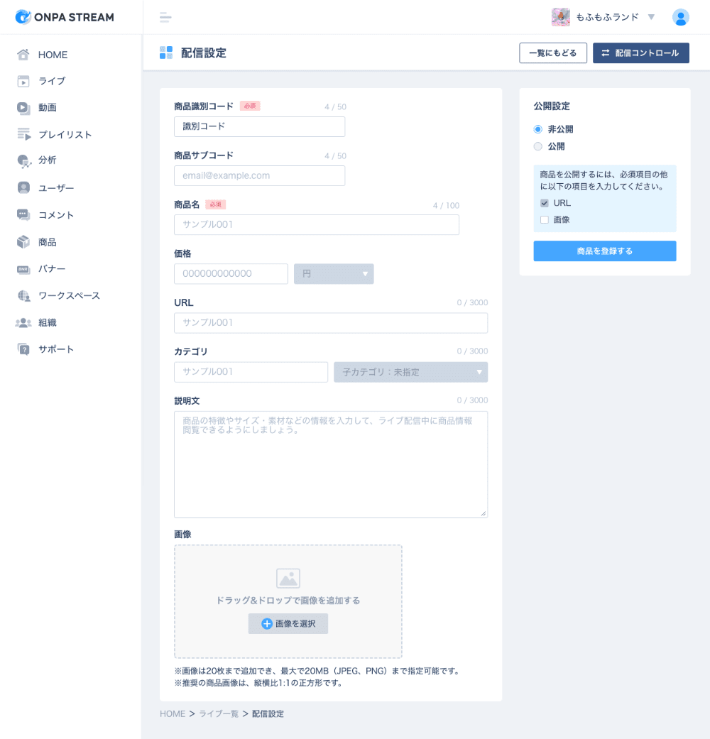 ライブコマース機能を簡単に自社サイトに導入できる、クラウドSaasサービスのUIデザインを担当。縦横画面作成。